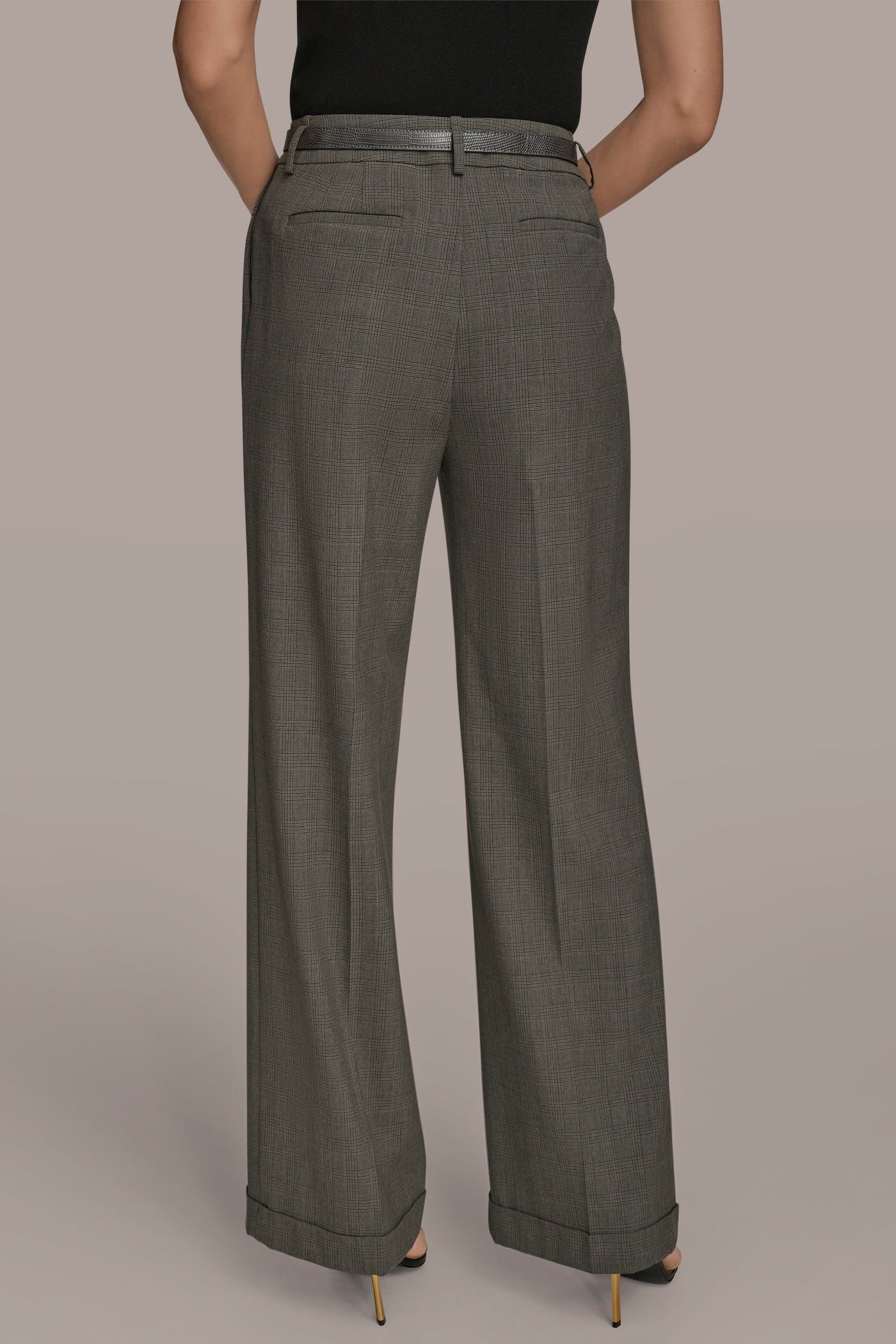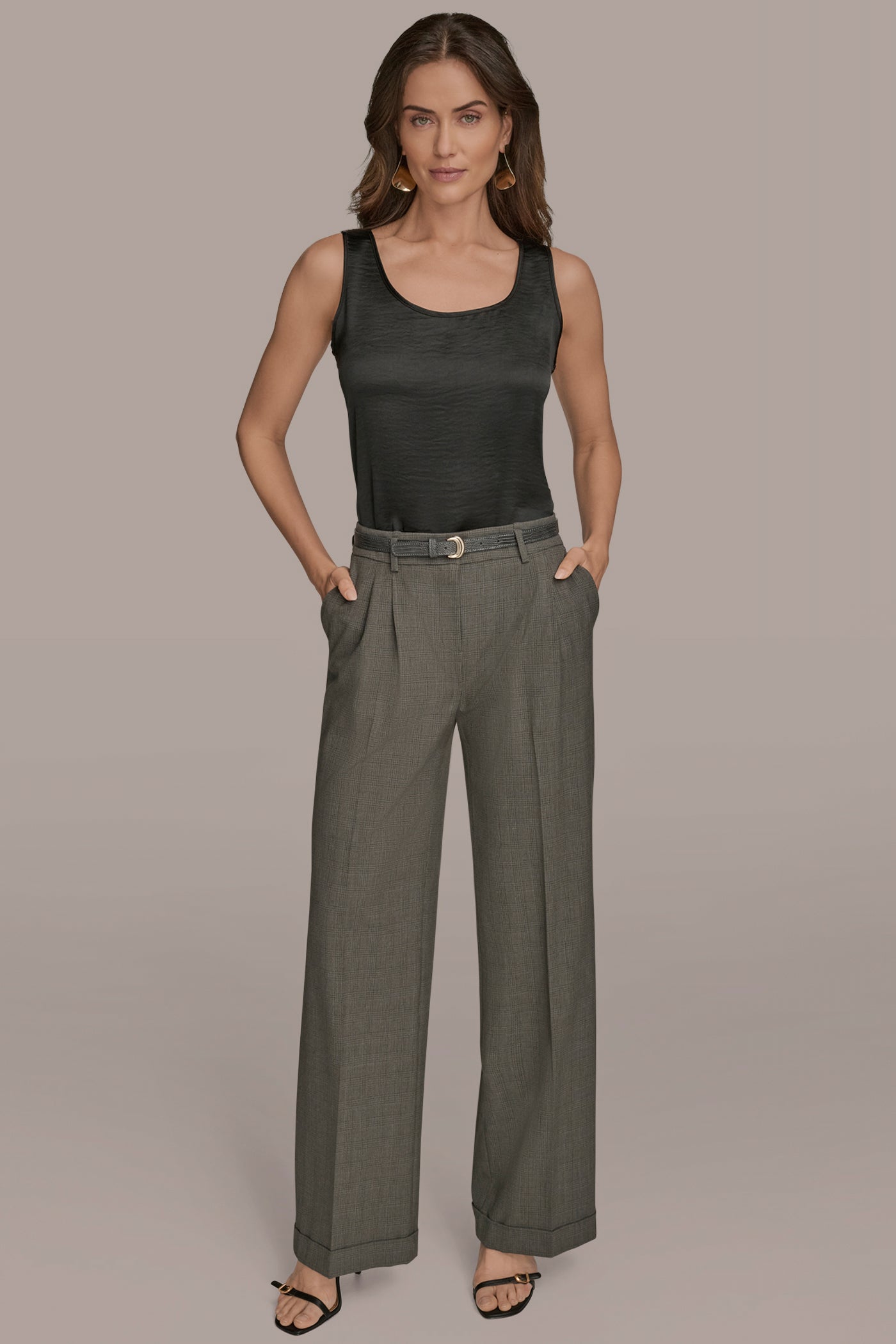 - High-Rise Pleated Menswear-Inspired Cuffed Wide-Leg Suit Pant