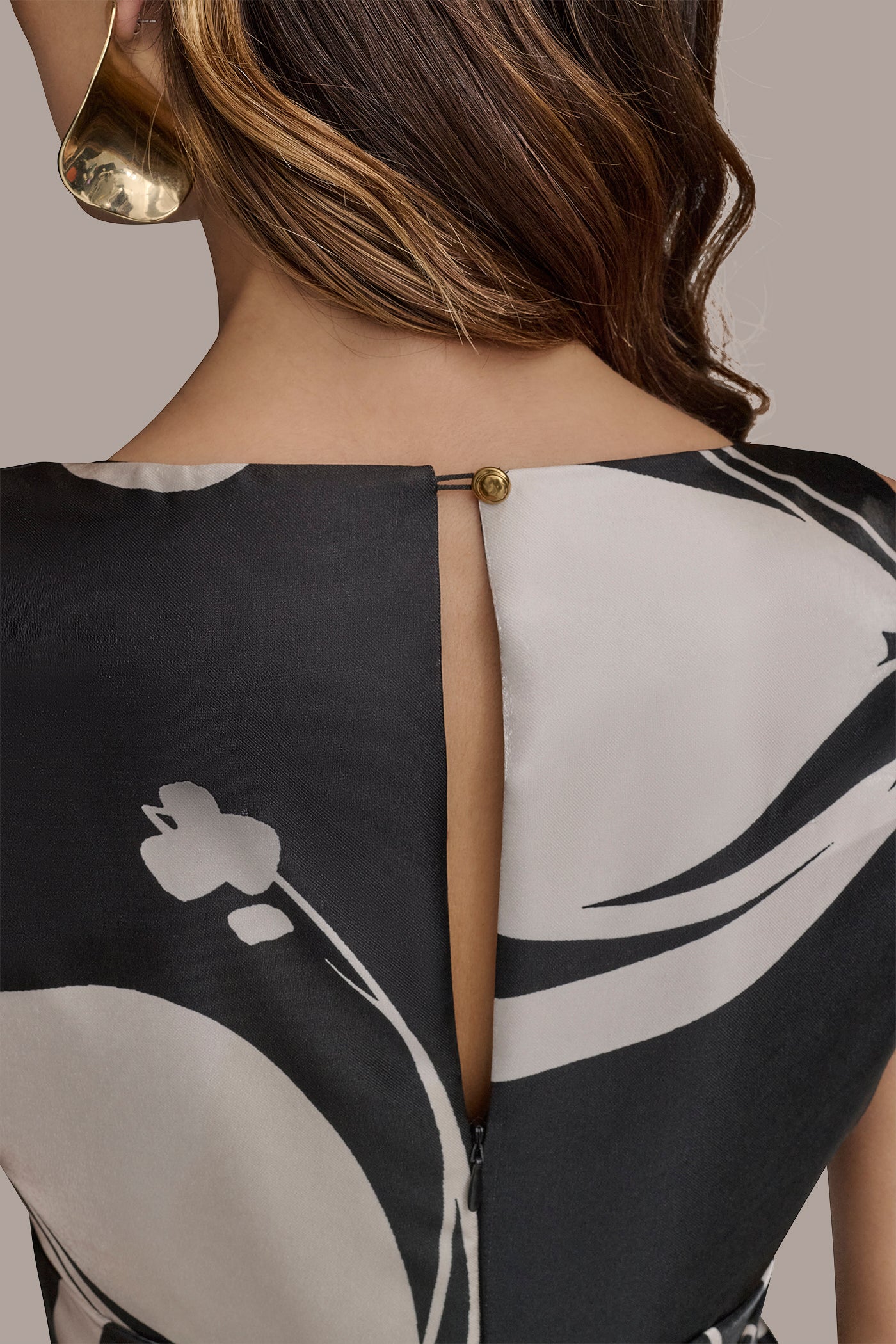- Keyhole button fastening at neck, concealed back zip fastening