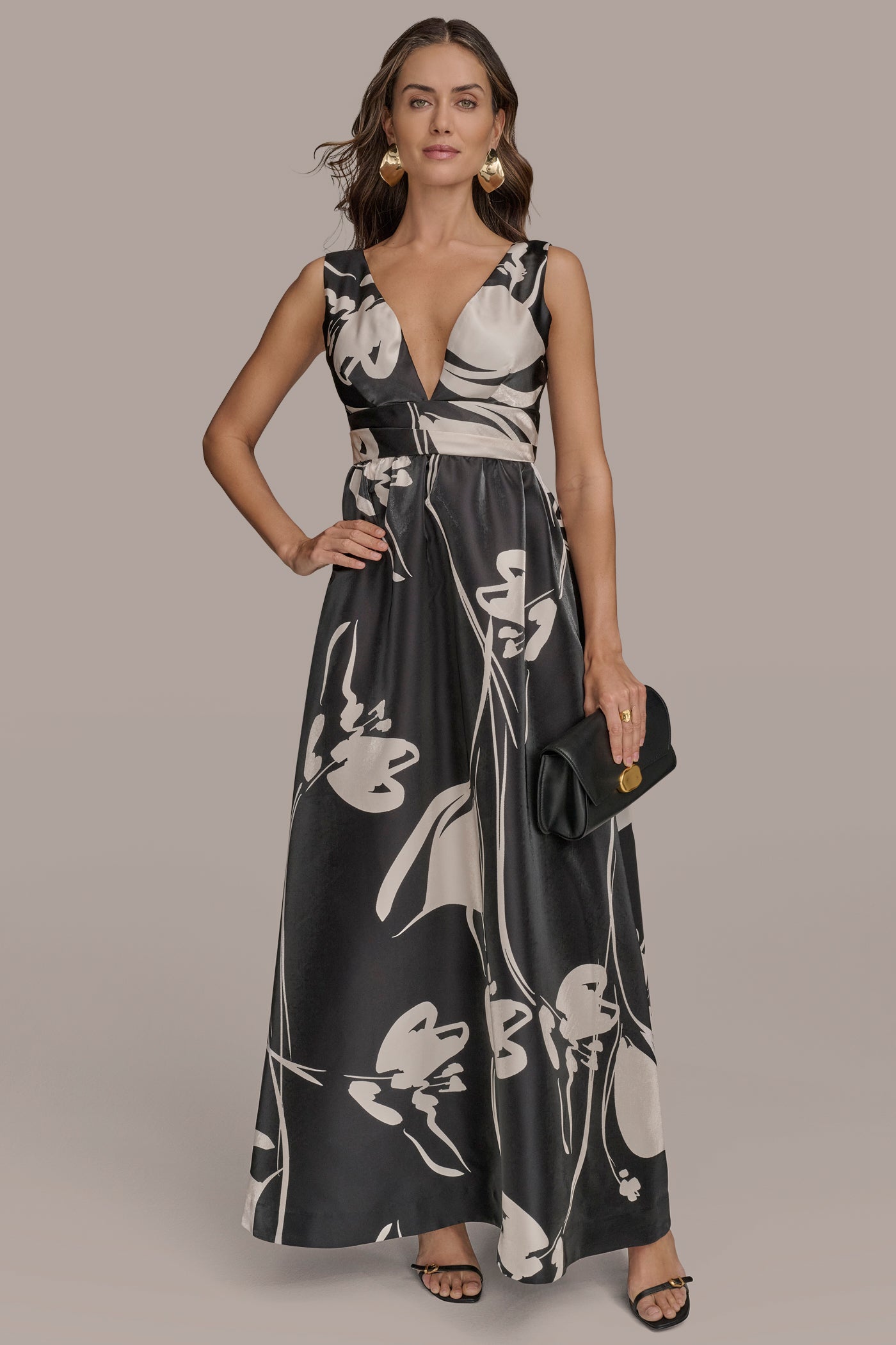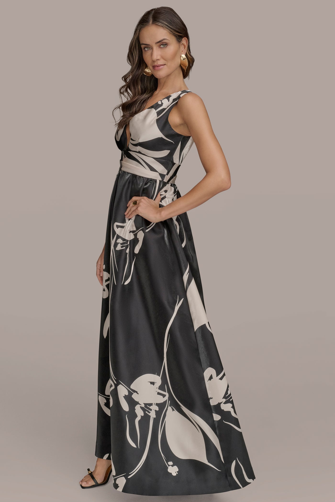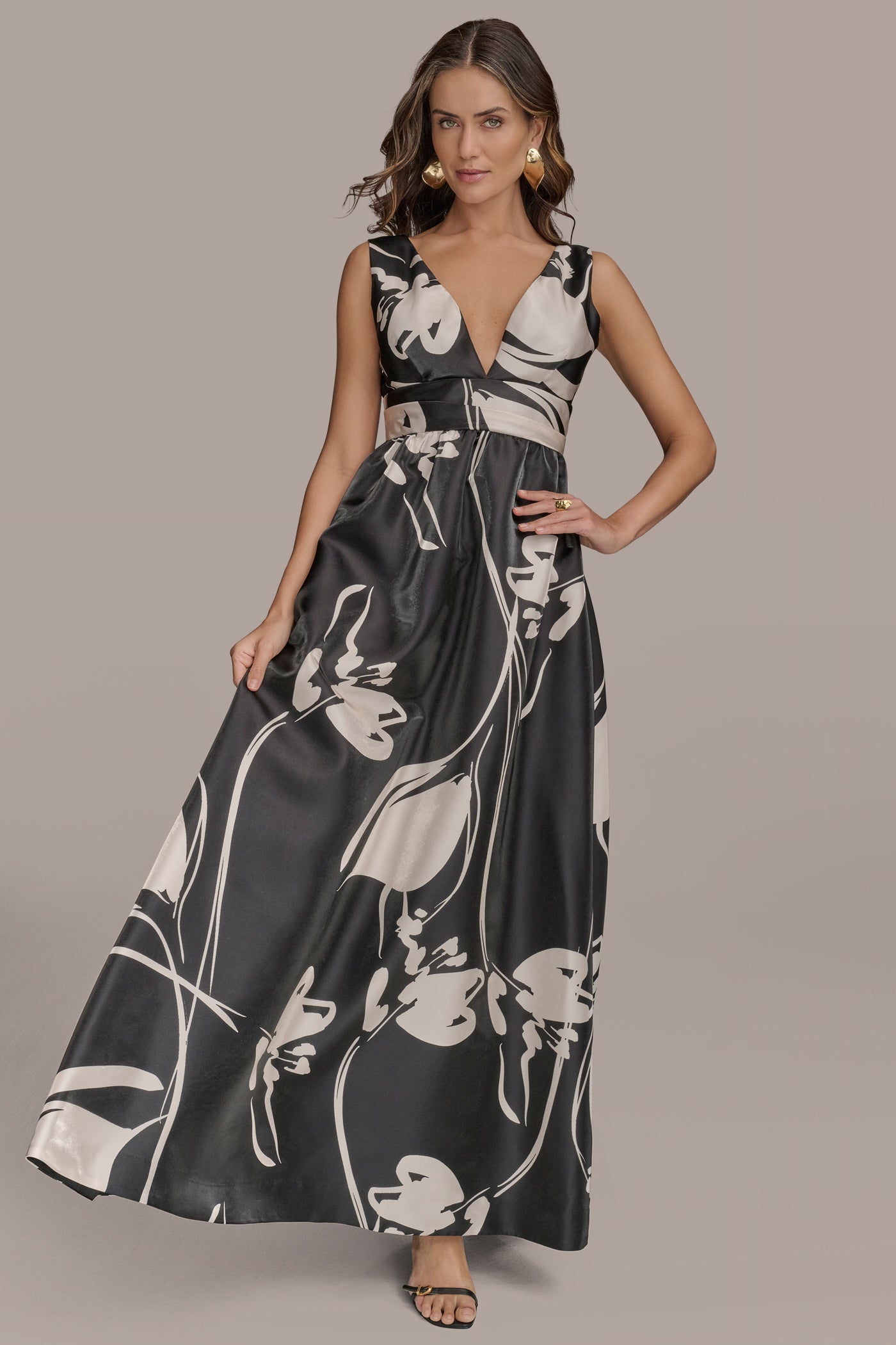 - Sleeveless Plunging V-Neck Shimmering Ball Gown