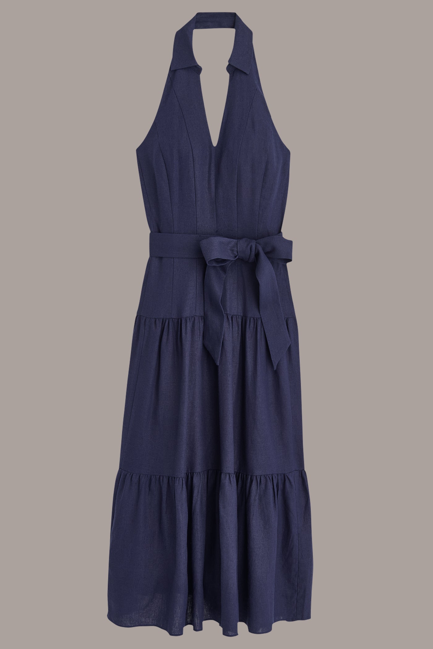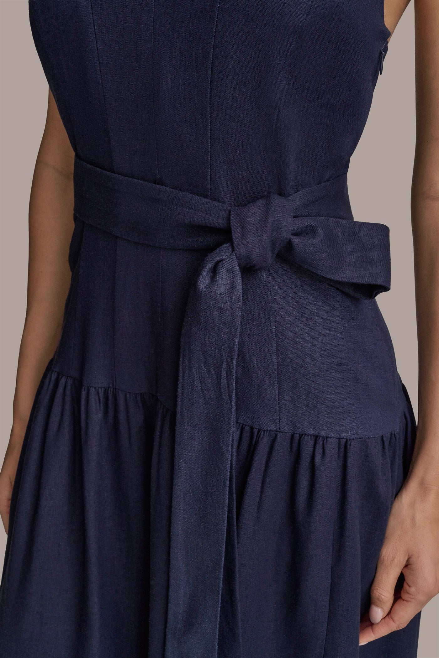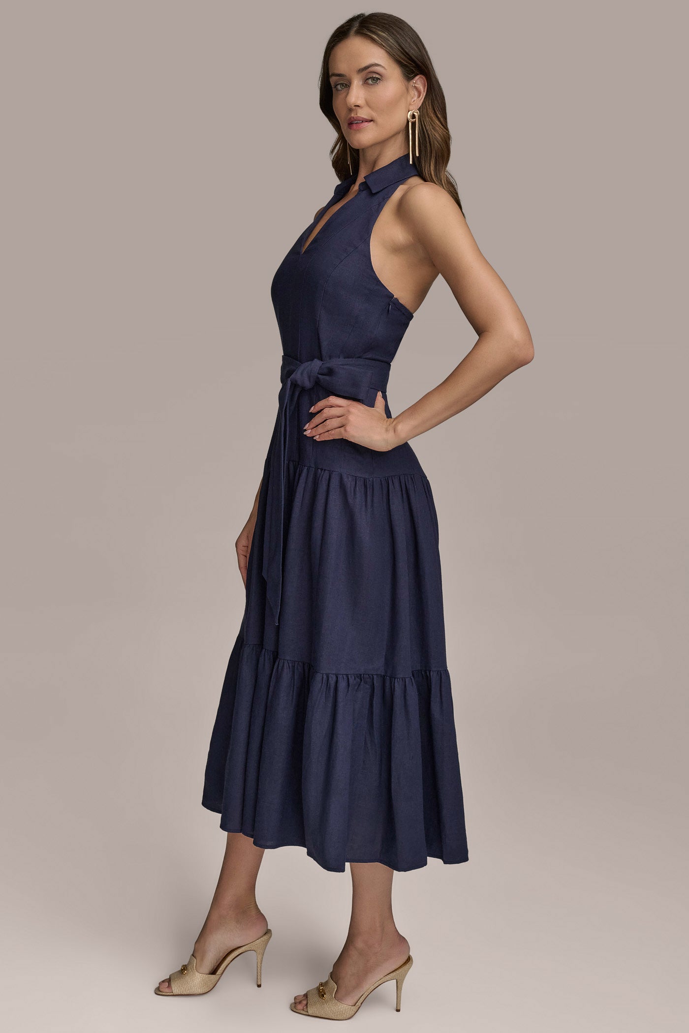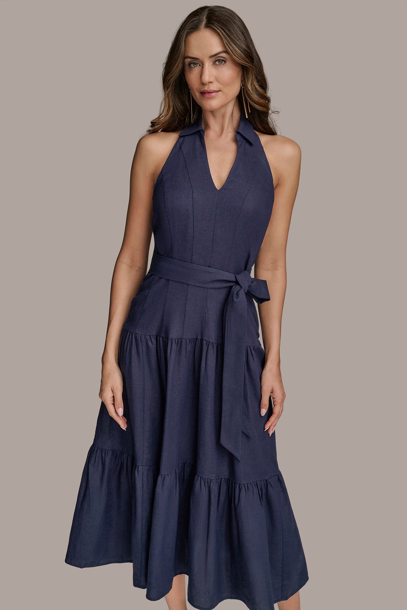 - Sleeveless Spread Collar V-Neck Tiered Midi Dress