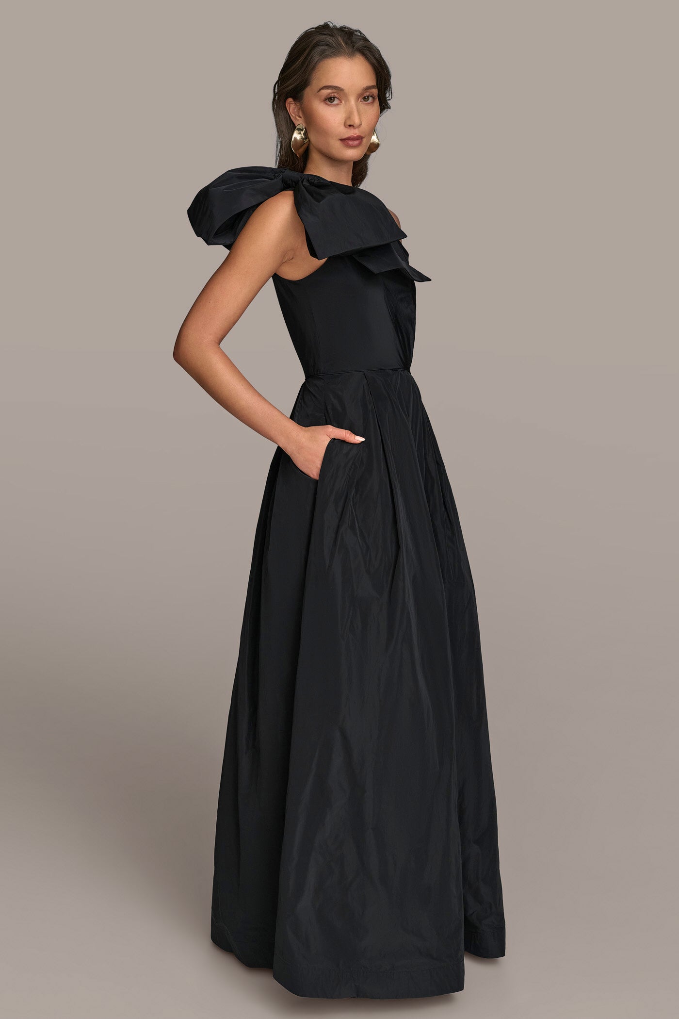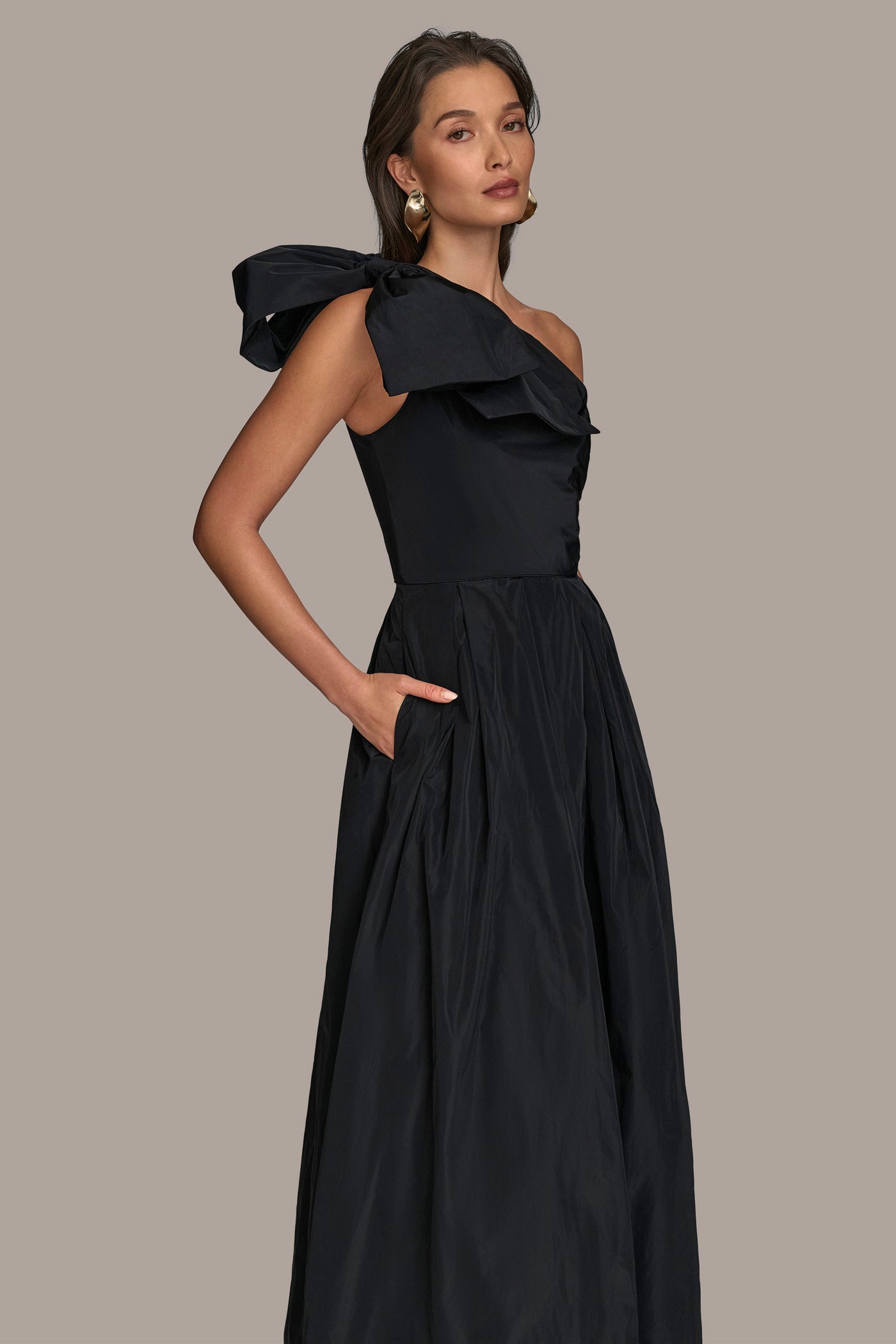 - Sleeveless Asymmetric One-Shoulder Taffeta Gown