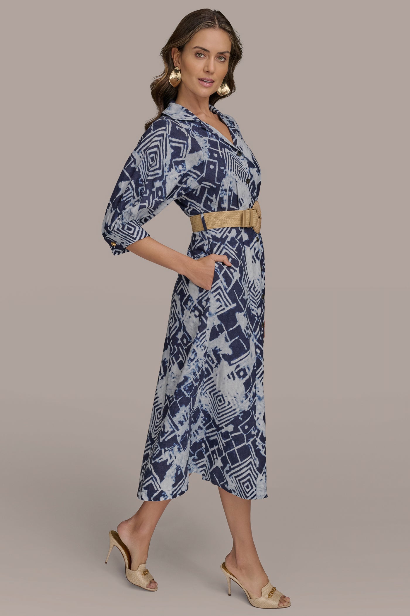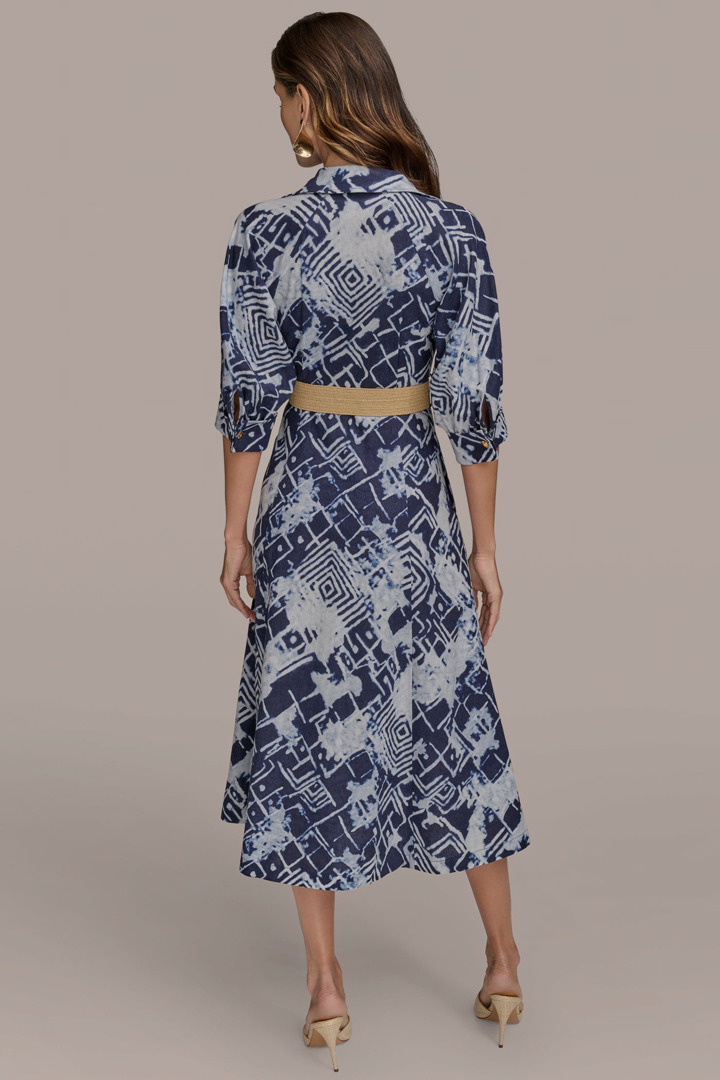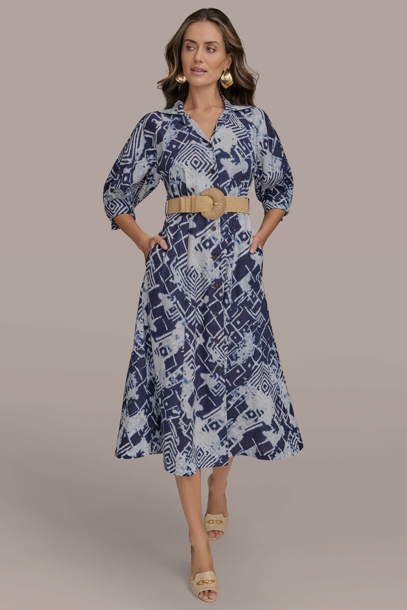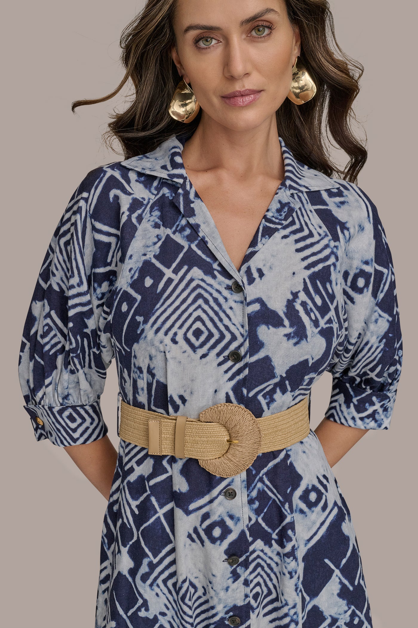 - Belted Elbow-Sleeve Spread Collar Shirt Dress