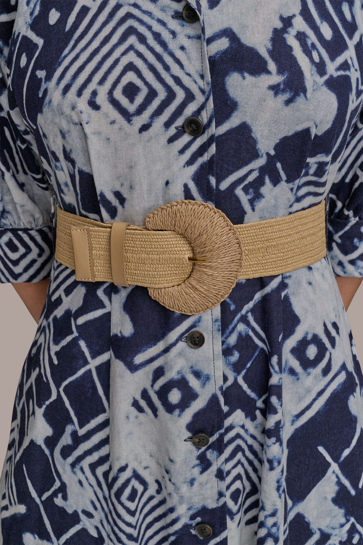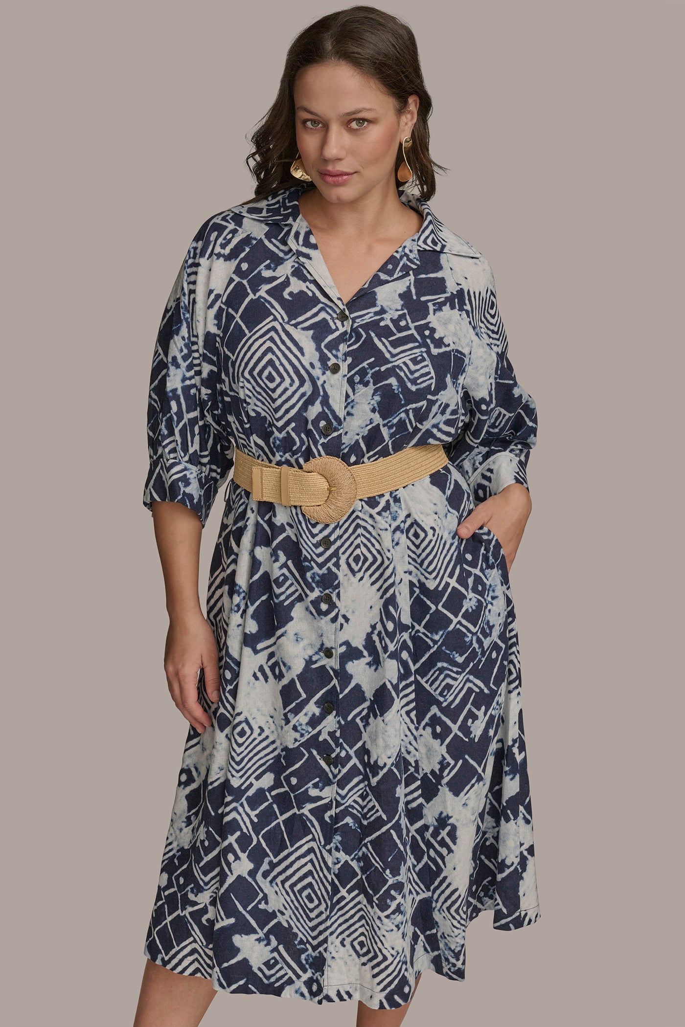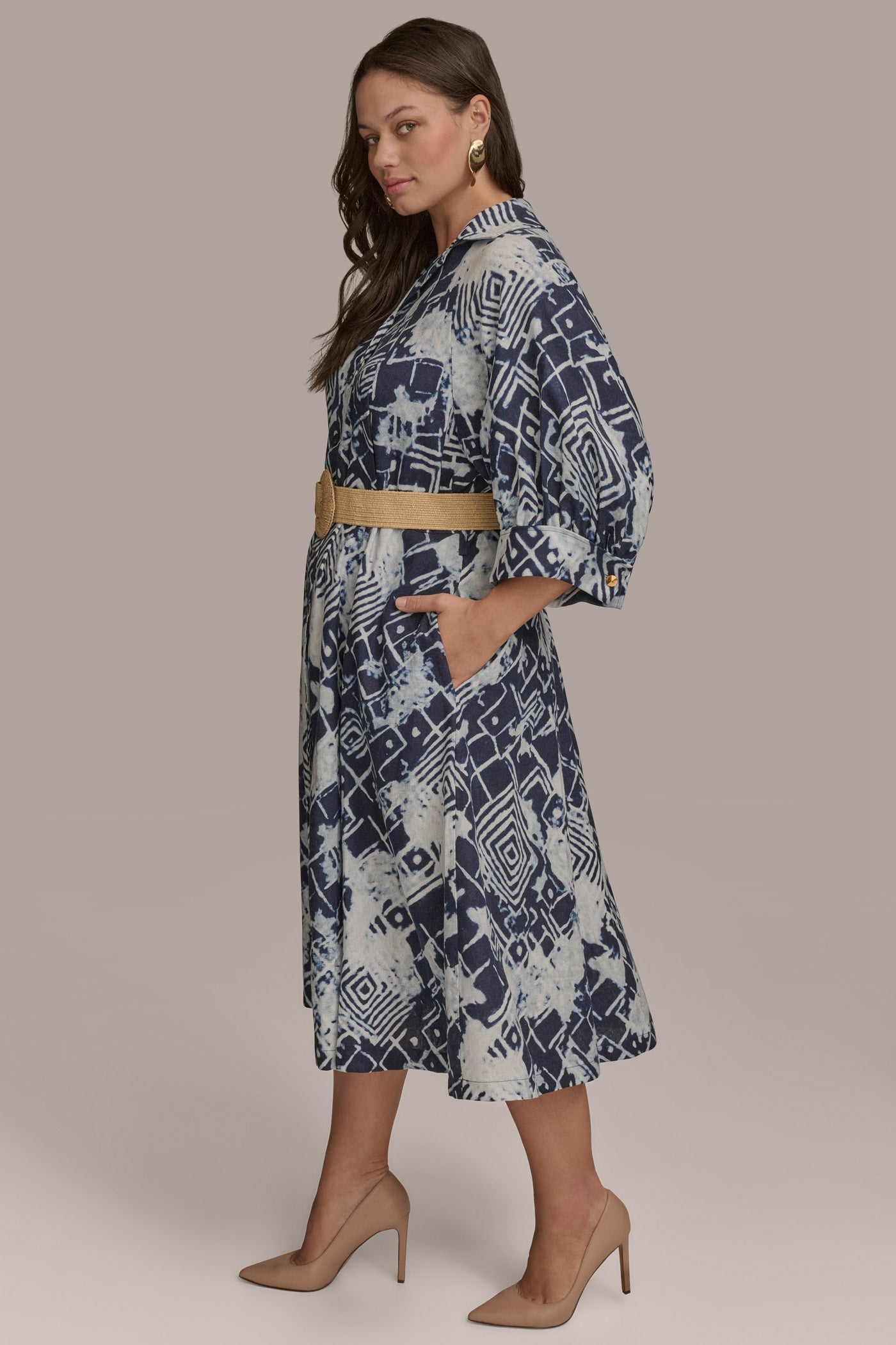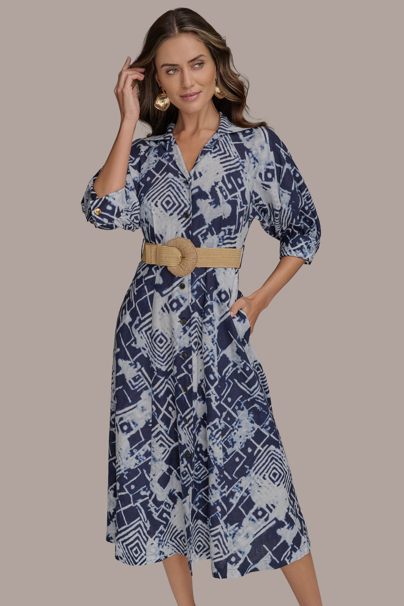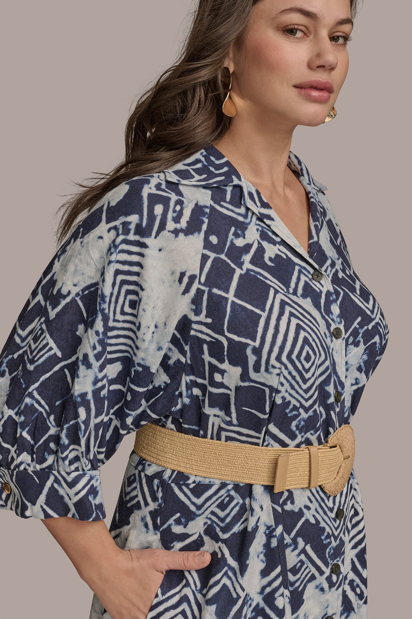 - Belted Elbow-Sleeve Spread Collar Shirt Dress