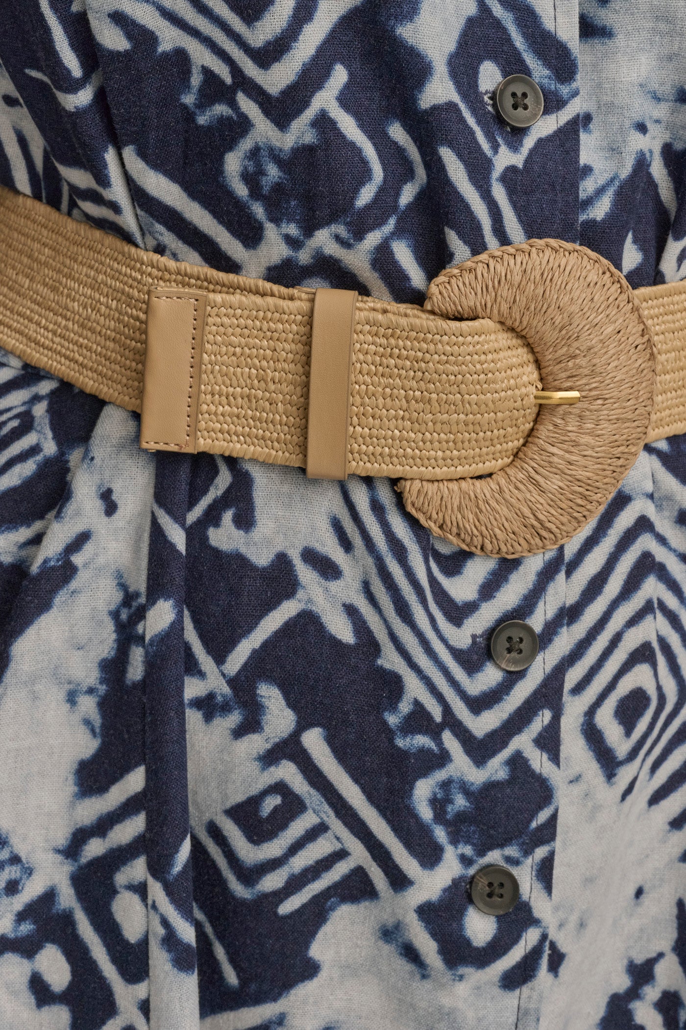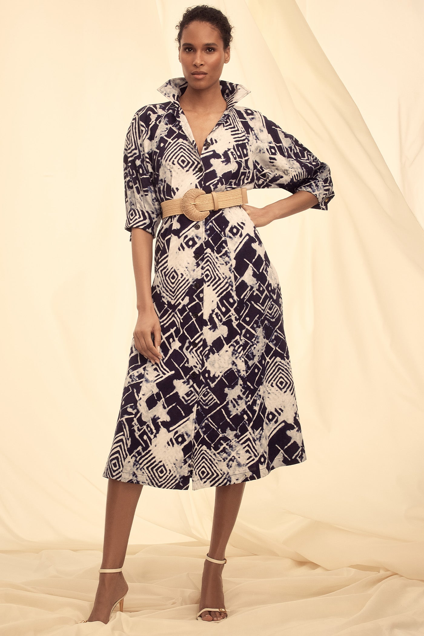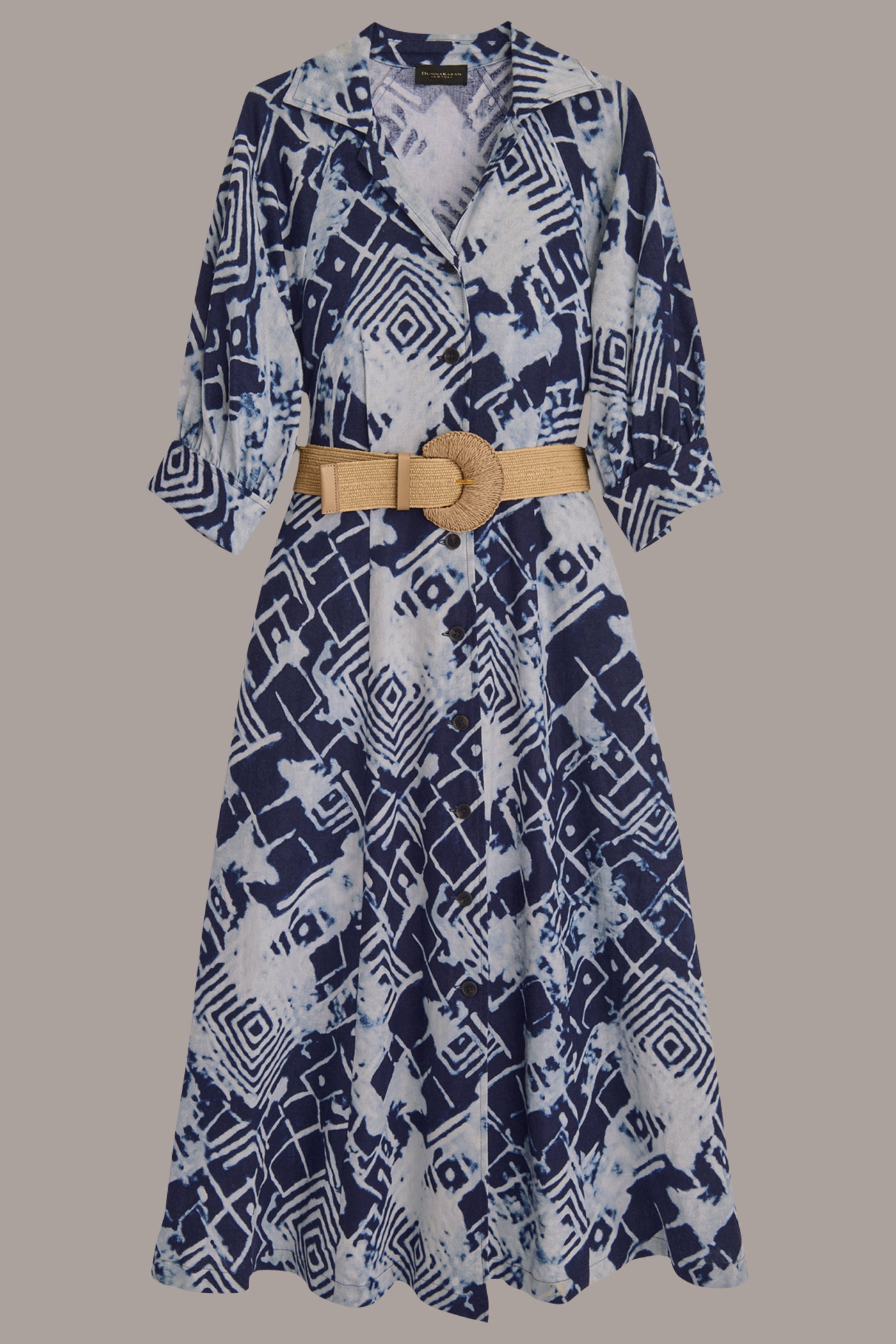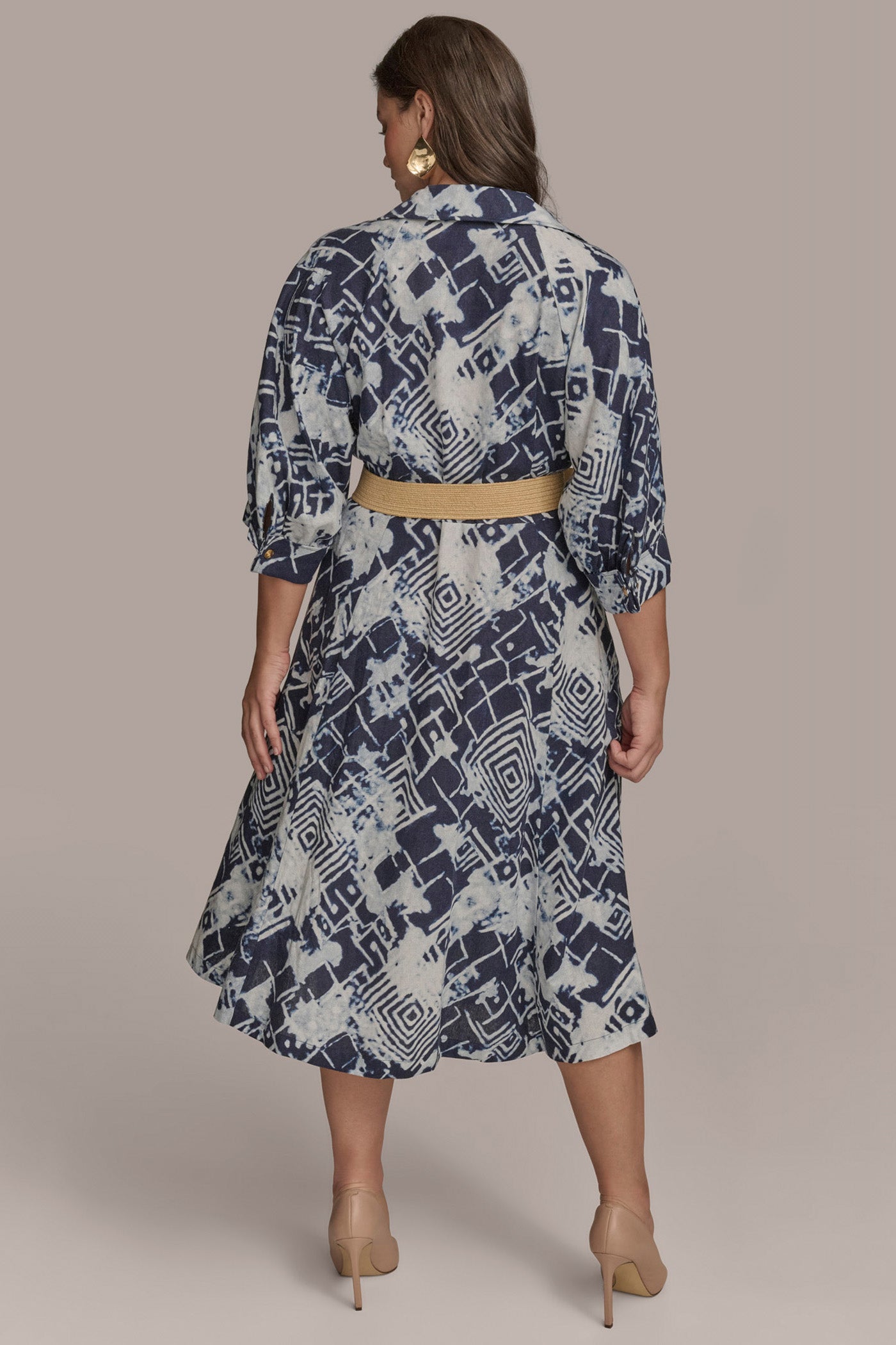 - Belted Elbow-Sleeve Spread Collar Shirt Dress
